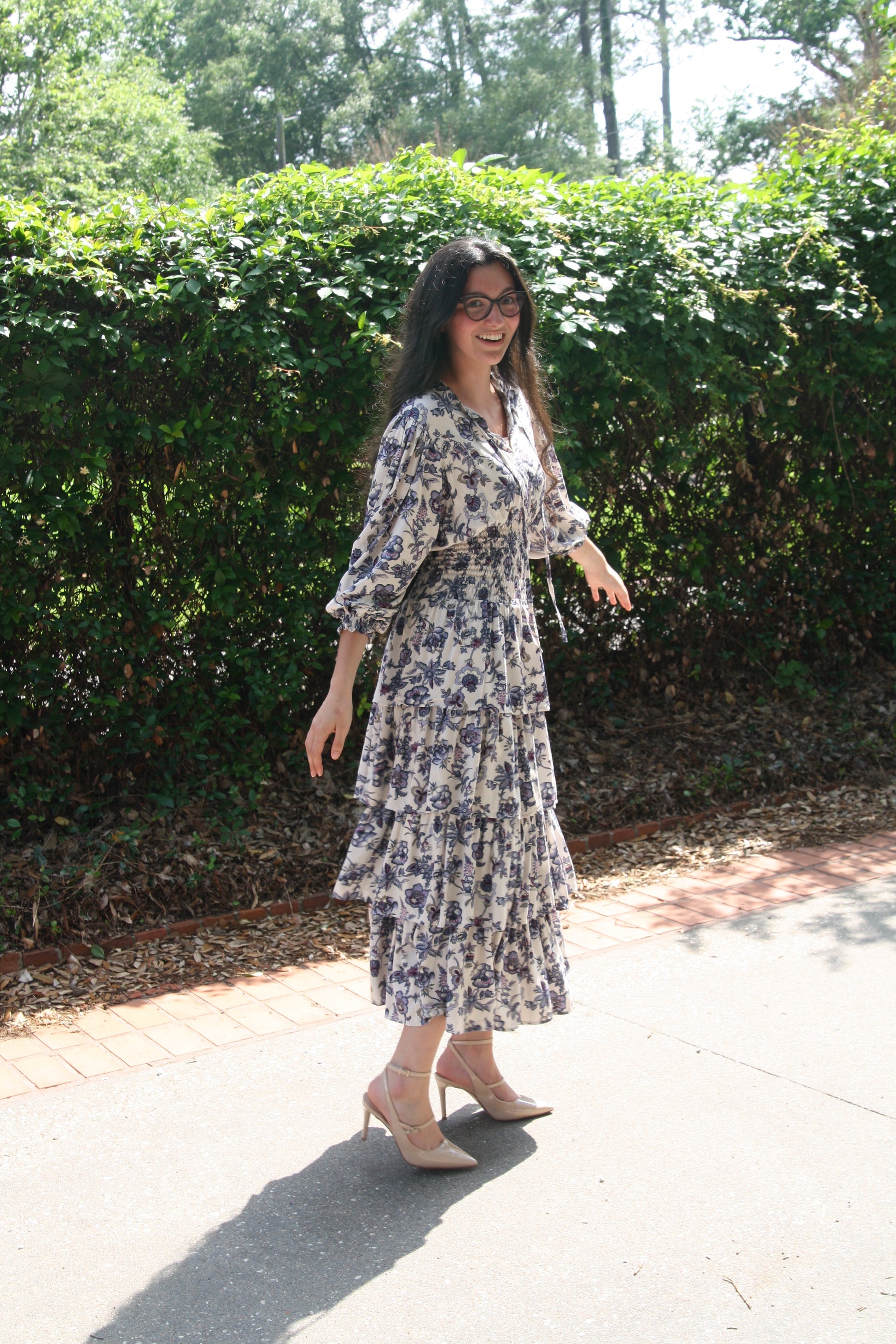 This gorgeous hand-made dress, printed with stunning blue and violet blooms, feels magical and timeless. Handcrafted from airy, breathable rayon, designed with smocked waist and tiered hem that creates gorgeous volume and movement. Looks great on every body type!